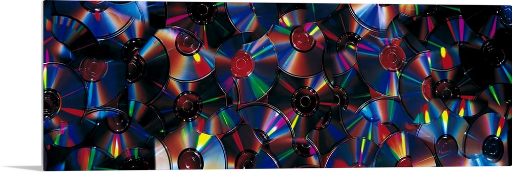 <p>Panoramic piece of a collage that consists of CDs.</p>