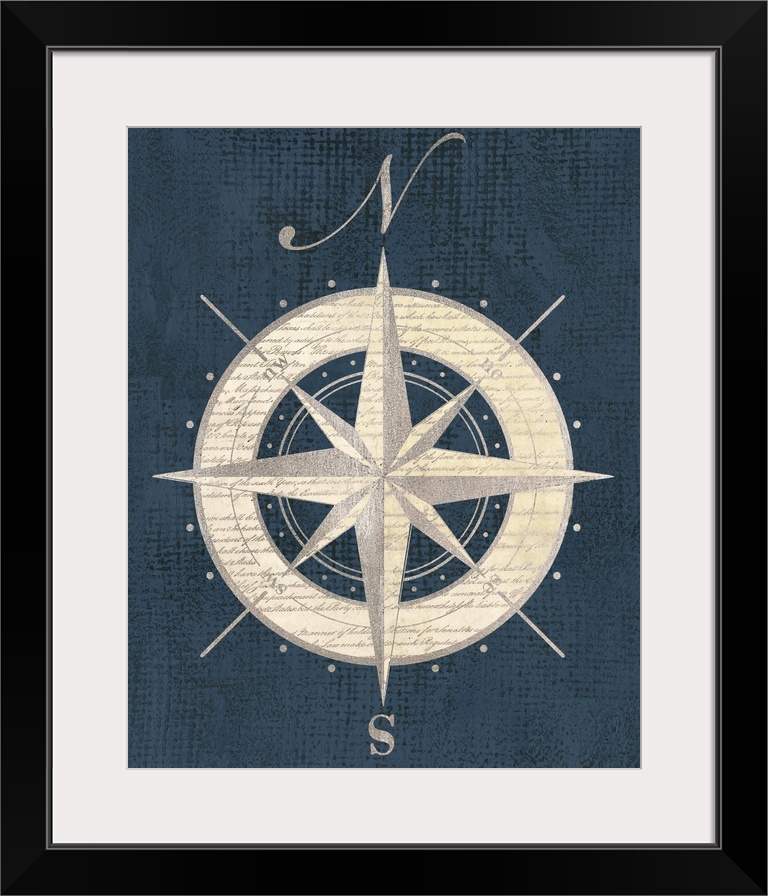 <p>Artwork of an antique compass rose representing north and south.</p>