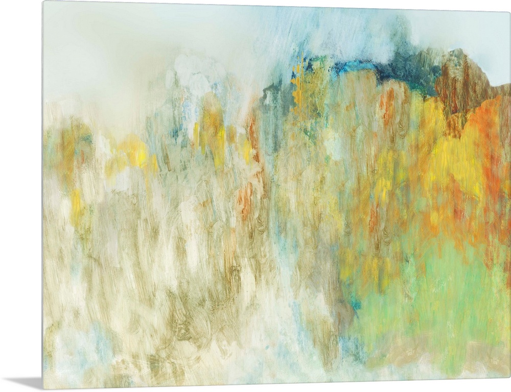 <p>Horizontal abstract landscape of earth tone colors of greens, brown and yellow.</p>