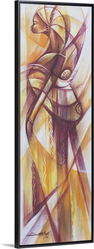 <p>Tall and dignified, a young mother carries her baby wrapped snug in a shawl on her back. She lulls the child to sleep by walking, Bright Dankyi Mensah says. I used earth colors to make this look more natural. His style is cubist, yet it reveals the influence of traditional West African art. You will never love anyone the way you love your baby, the artist confides.</p>
