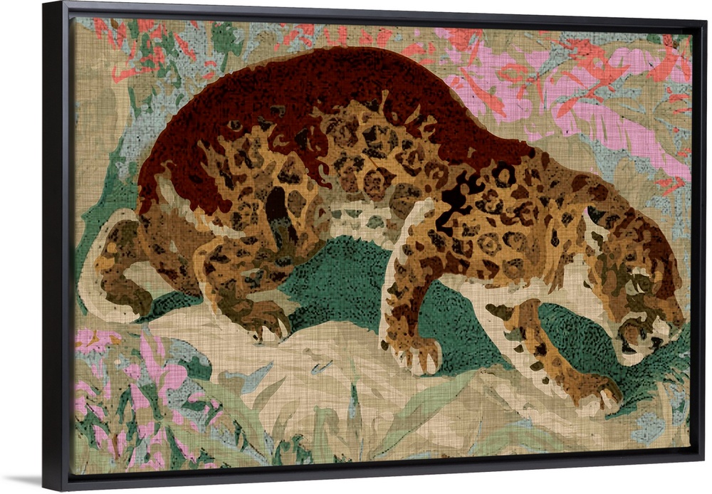 <p>Bohemian painting of a tiger in front of a floral background.</p>