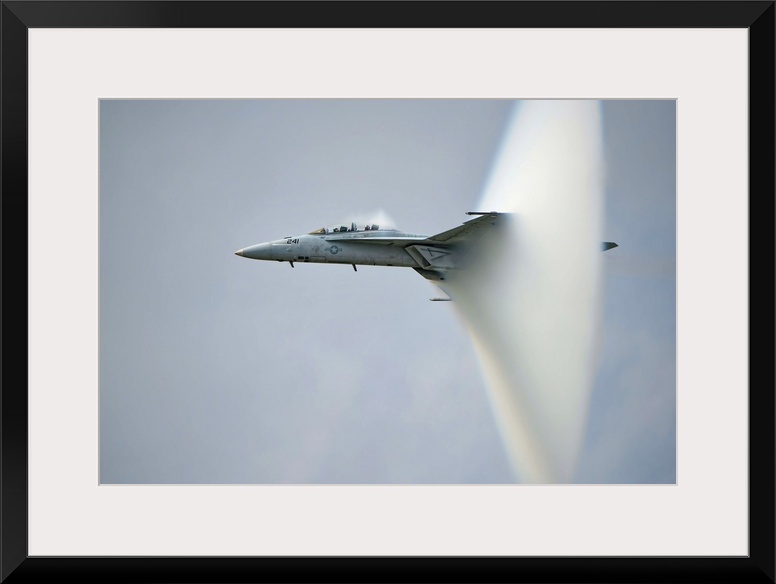 <p>A F/A-18 Super Hornet forming a cone of air as it breaks the sound barrier.</p>