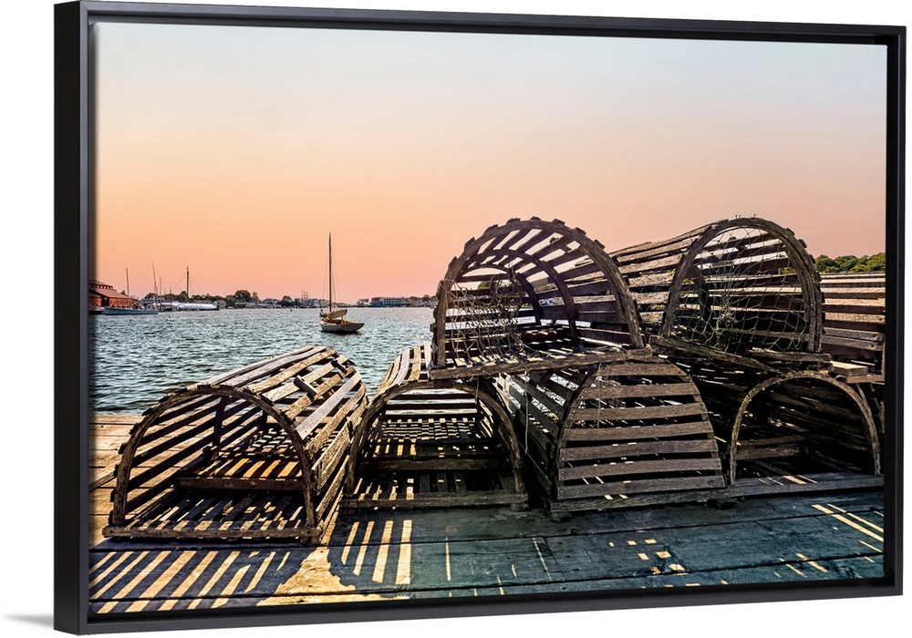 <p>Connecticut, Mystic, Mystic Seaport Museum, Seaport village, Living History Museum, seaport scene, lobster traps.</p>