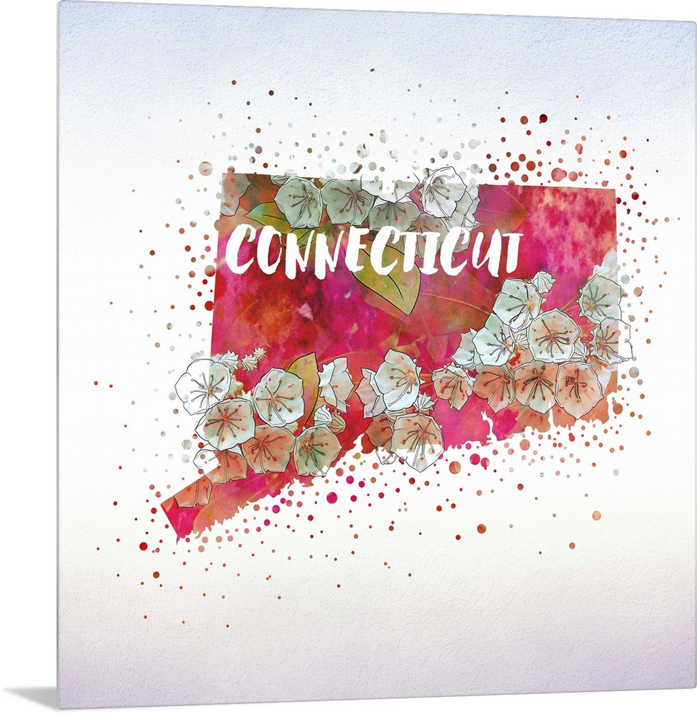 <p>Outline of the state of Connecticut filled with its state flower, the Mountain Laurel.</p>