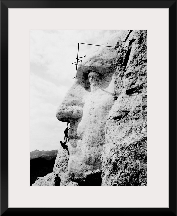 <p>Construction of George Washington's face on Mount Rushmore, 1932.</p>
