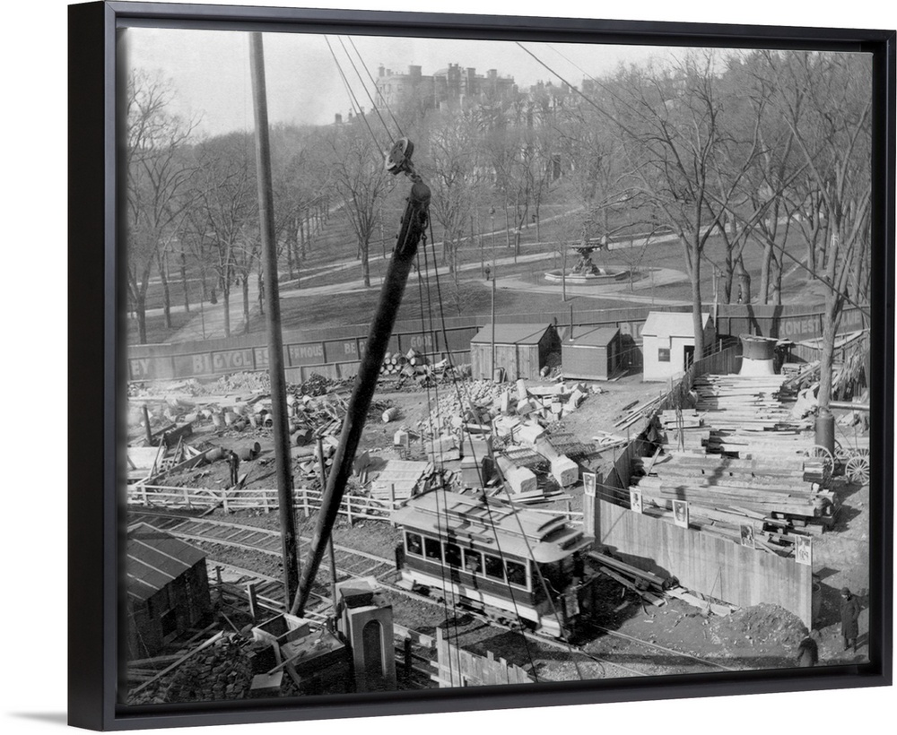 <p>A streetcar passes by a work site on Boston Common during a construction project.</p>