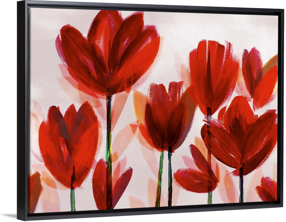 <p>A contemporary painting of bright red poppies in broad brush strokes on a neutral backdrop.</p>