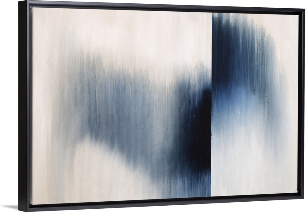 <p>Large abstract painting with an indigo gradient going though the middle and flipped to the top on the left side on a warm toned cream background.</p>