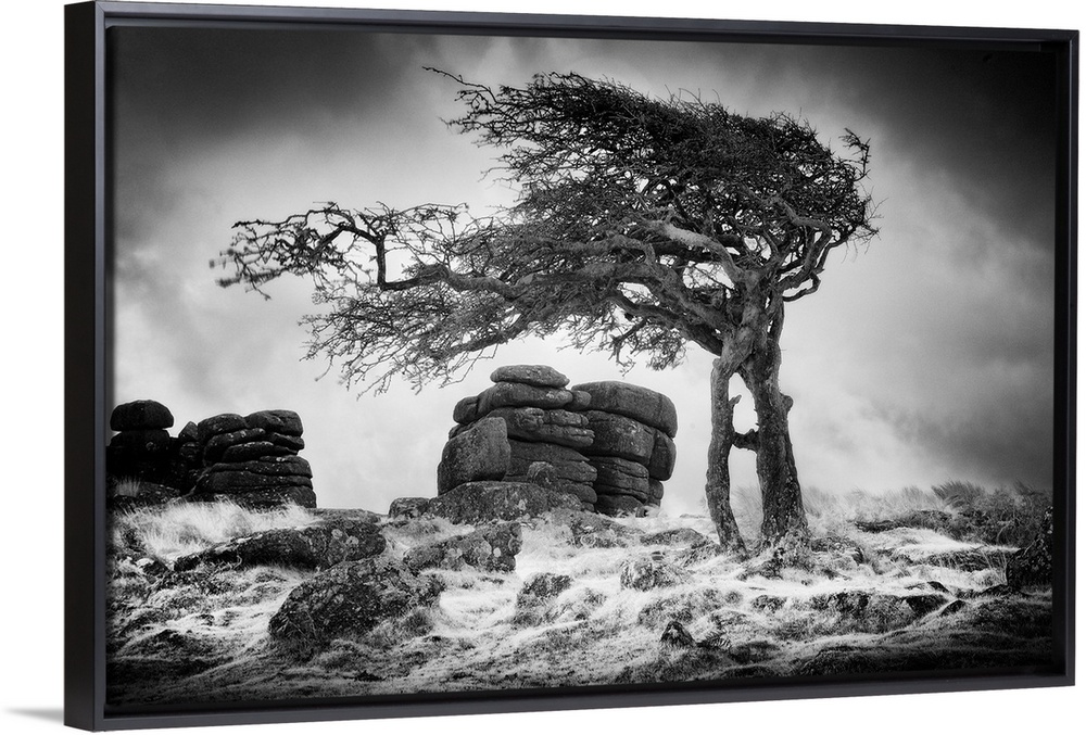 <p>Infrared view of contorted hawthorn tree, Combestone Tor, Dartmoor National Park, Devon, England.</p>