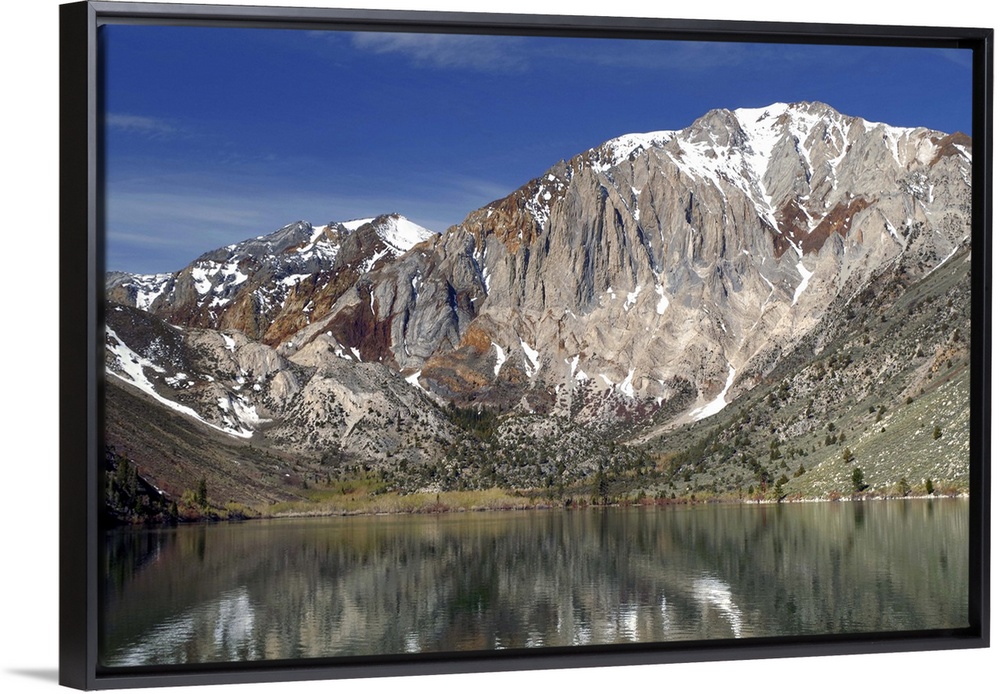 <p>Landscape photograph of Convict Lake with a rocky mountain range in the background.</p>