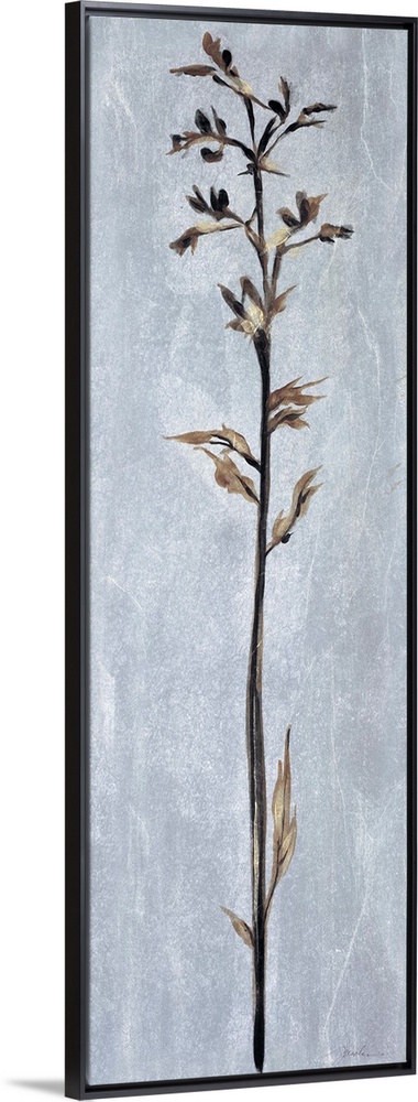 <p>Contemporary painting of a tall thin flower against a pale gray almost like stone.</p>