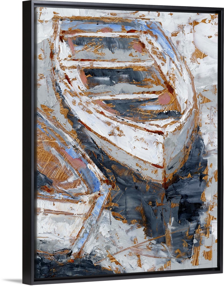 Art Coastal Contemporary Art Rivers, Lakes, and Oceans Grey Wall Art Dove Grey Ethan Harper Painting Transportation Boat Rowboat