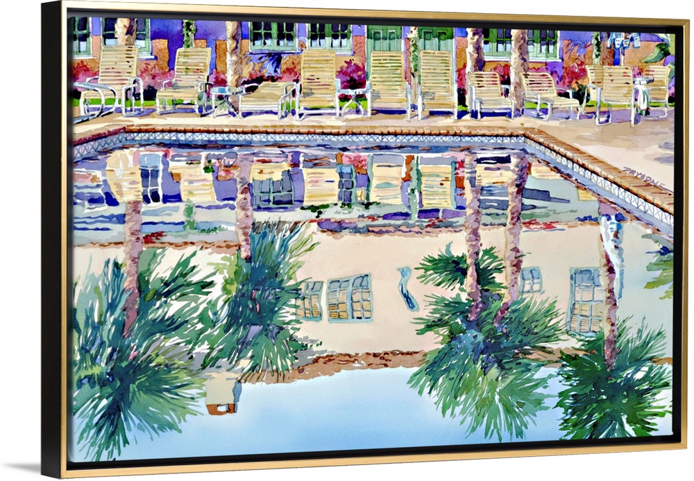 <p>Watercolor painting of a reflection in a Palm Springs swimming pool</p>