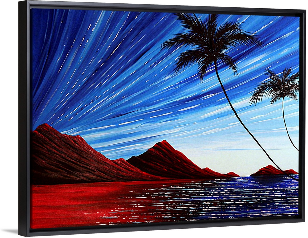 Art Blue Wall Art Contemporary Art Rivers, Lakes, and Oceans Megan Duncanson Landscapes Beaches Seascapes Trees Palm Painting