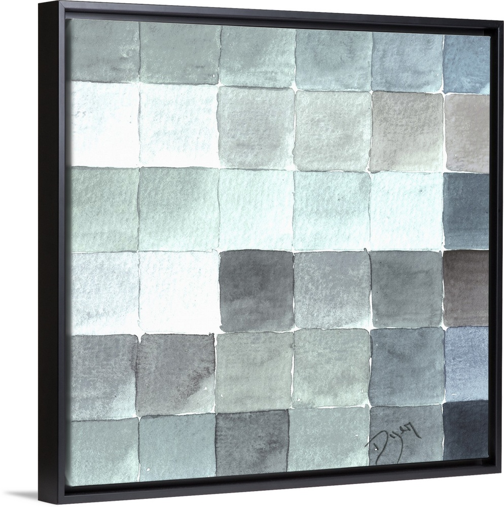 <p>Contemporary artwork of square tiles in various cool tones.</p>