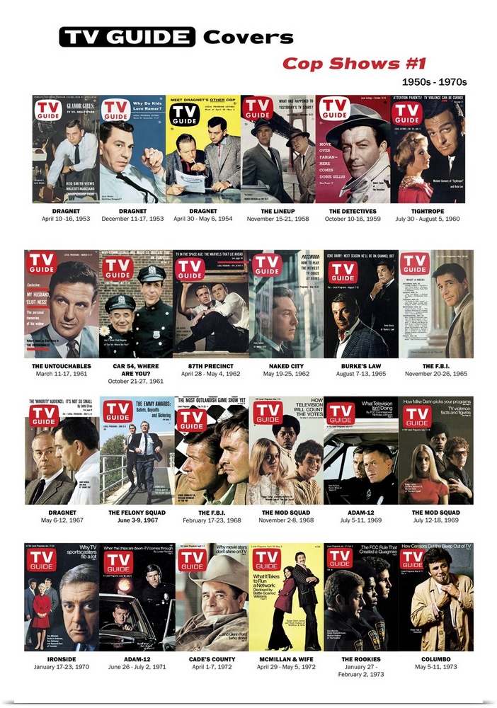 <p>Cop Shows #1 (1950s - 1970s), TV Guide Covers Poster, 2020. TV Guide.</p>