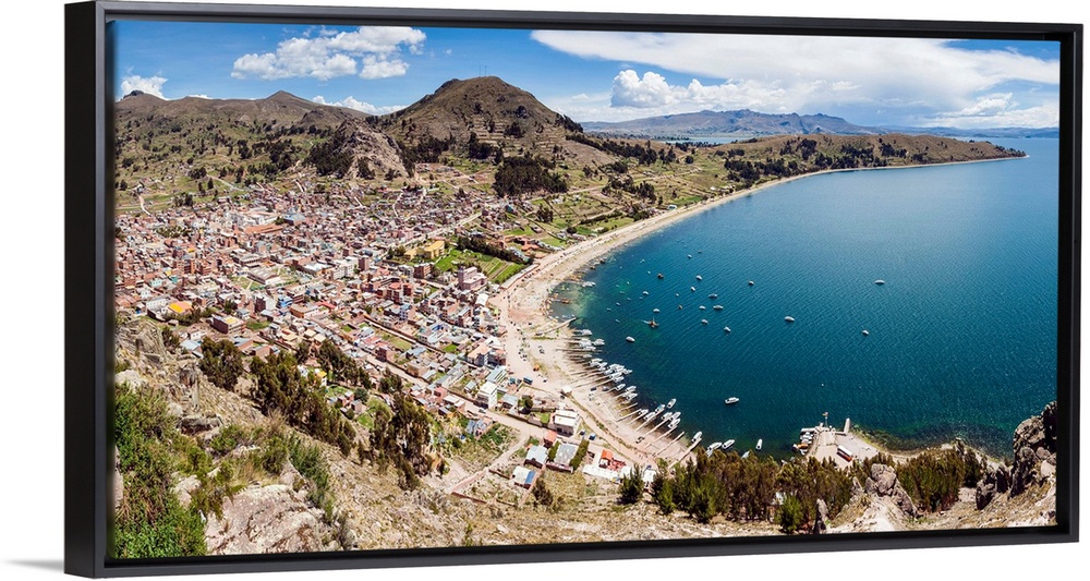 <p>View of Copacabana and Lake Titicaca from Cerro Calvario, Copacabana, La Paz Department, Bolivia, South America.</p>