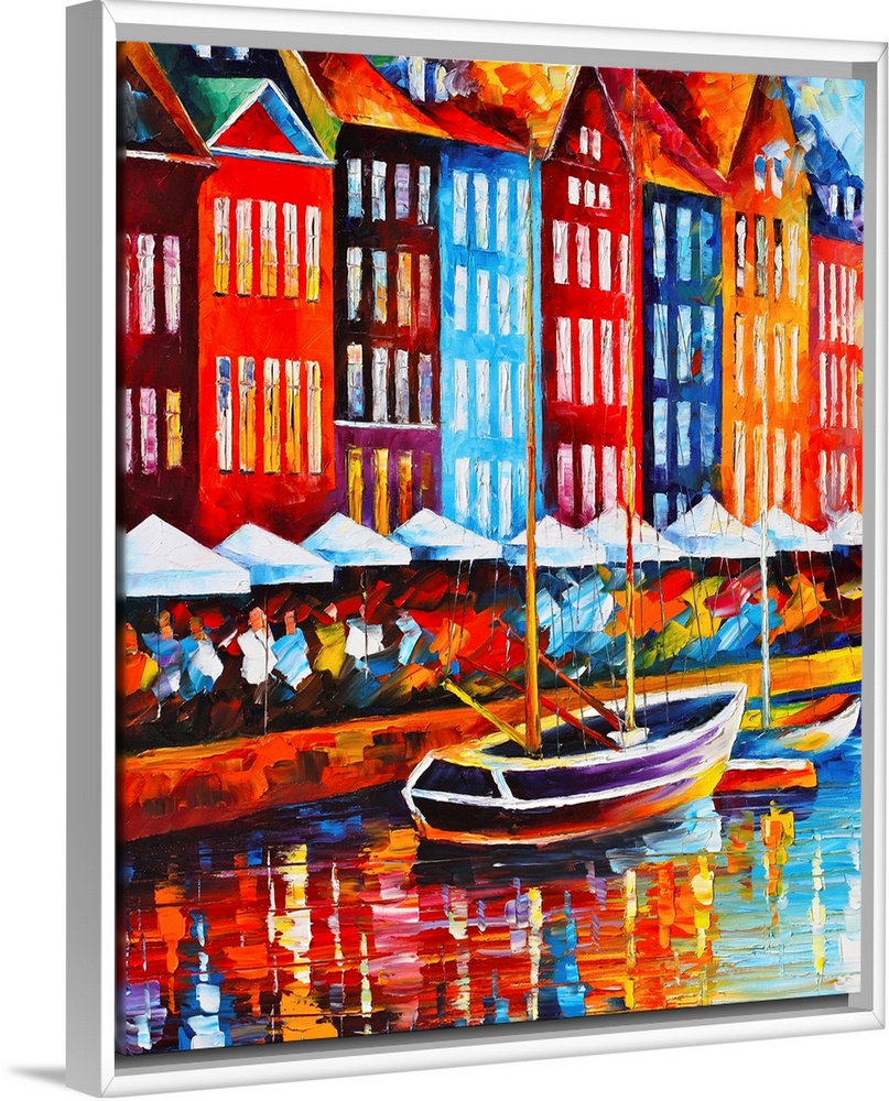 Leonid Afremov Art Cityscapes Impressionism Contemporary Art Painting Red Wall Art Denmark Transportation Boat