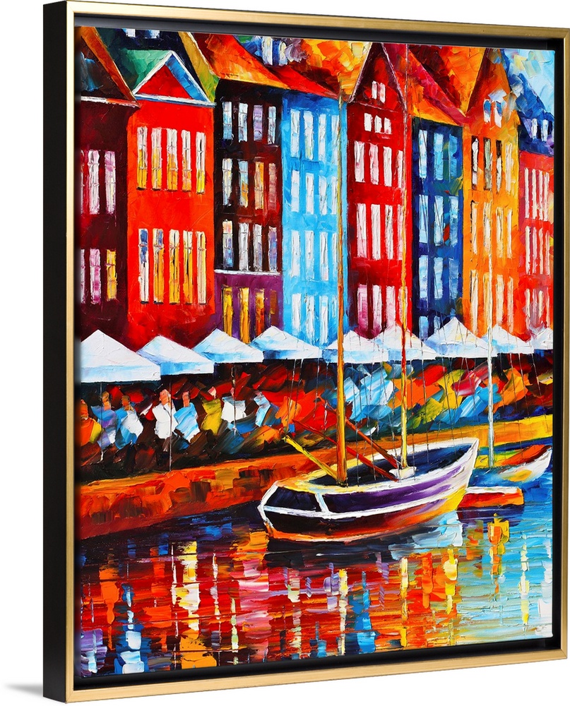 Leonid Afremov Art Cityscapes Impressionism Contemporary Art Painting Red Wall Art Denmark Transportation Boat