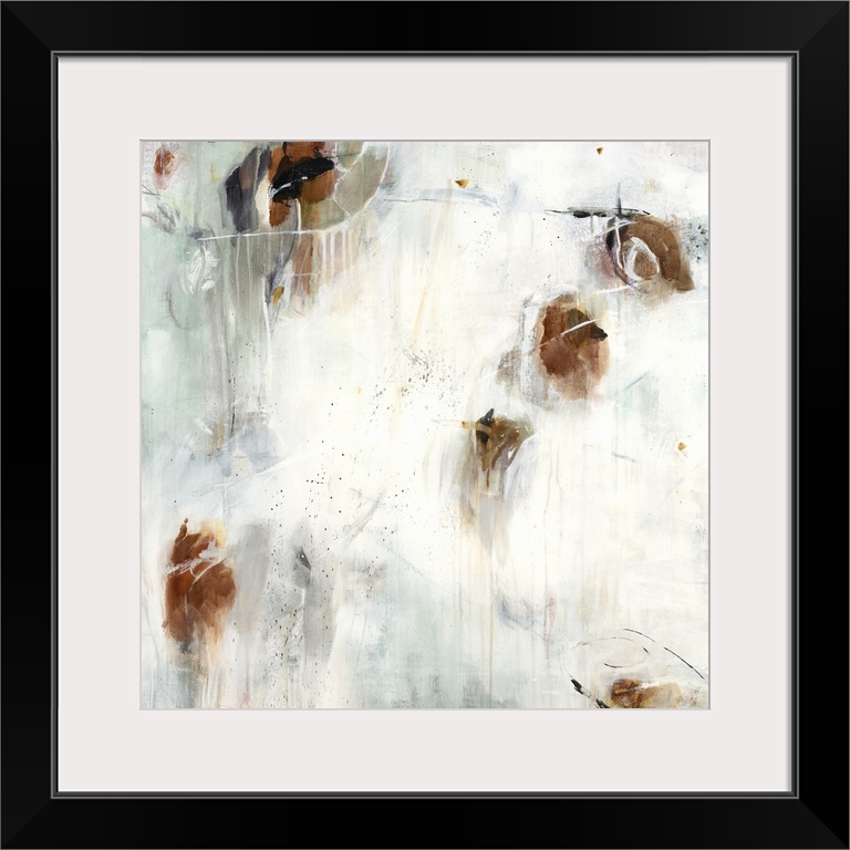 <p>A contemporary abstract painting using splashes of brown against a neutral background.</p>