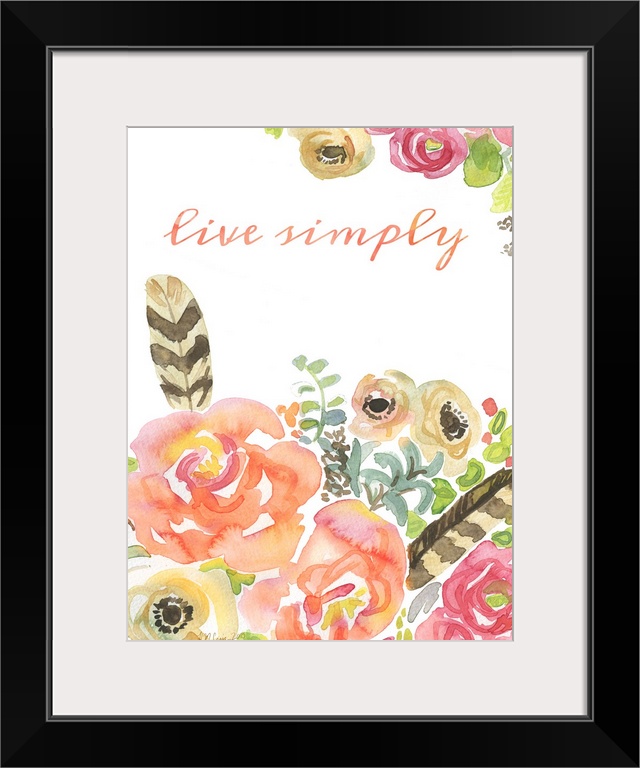 <p>Inspirational sentiment with watercolor flowers and striped feathers.</p>