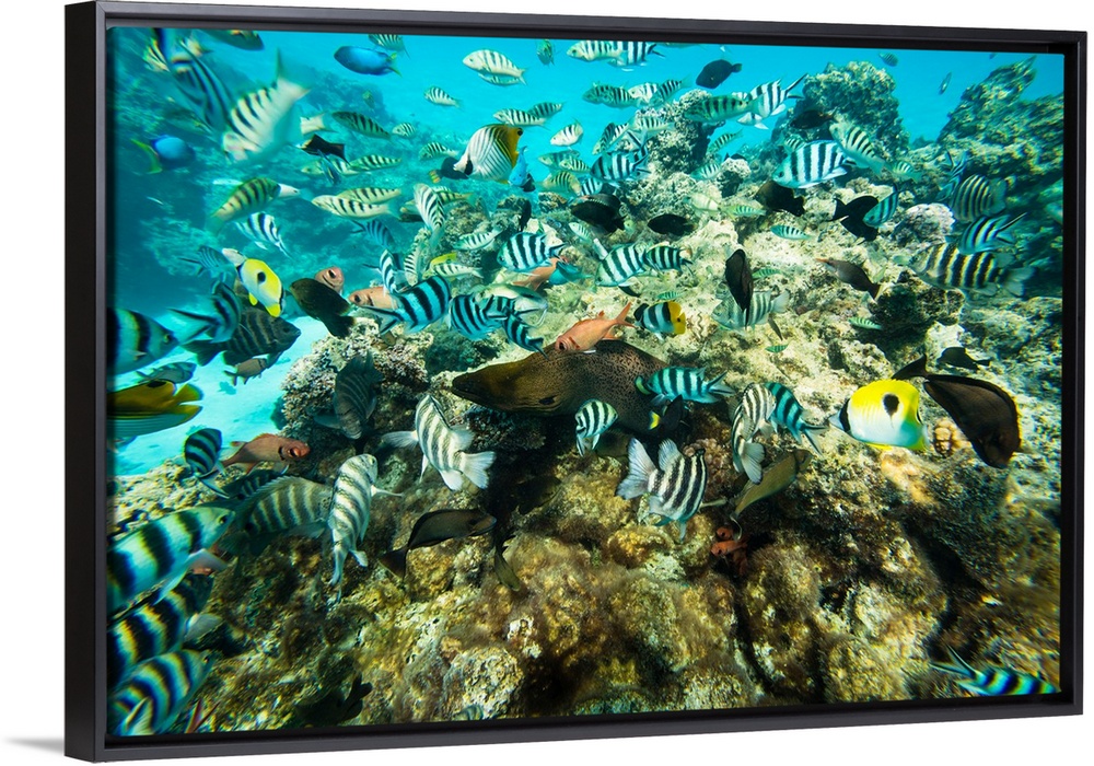 <p>Coral Reef fish swimming in the Pacific Ocean, Tahiti, French Polynesia</p>