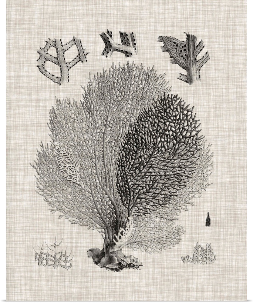 <p>A decorative vintage illustration of group of coral on a linen backdrop.</p>