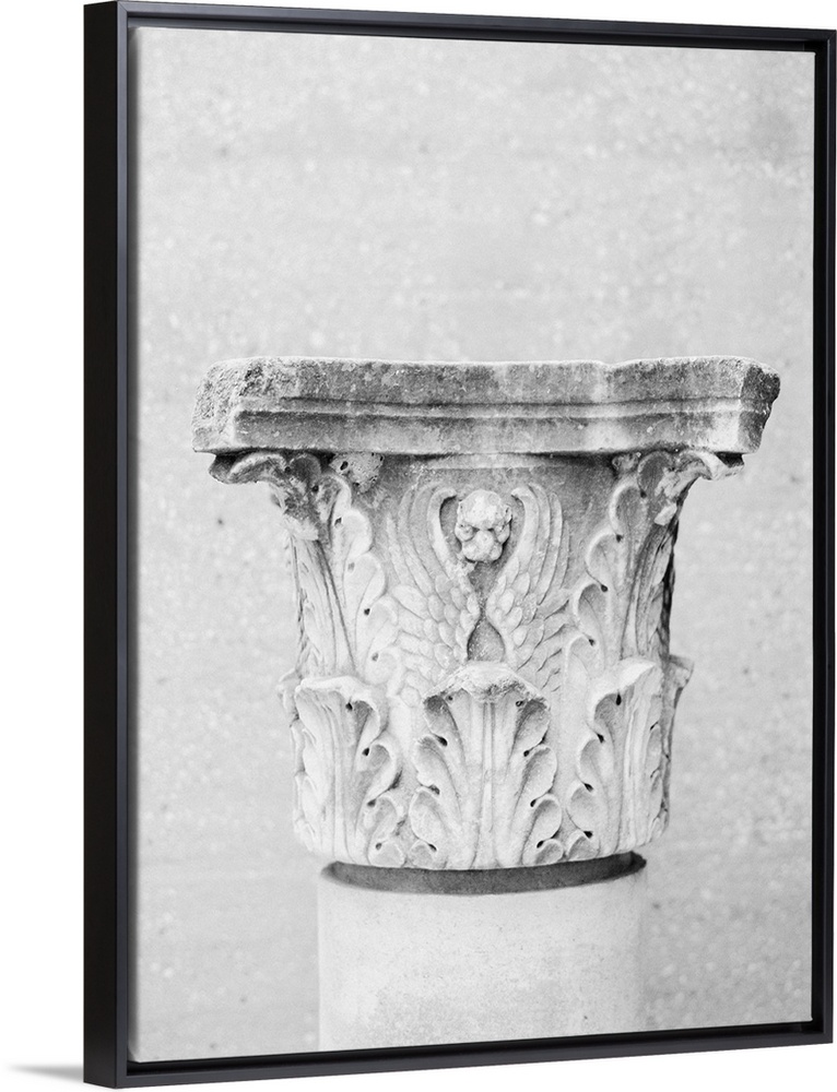 <p>Black and White photograph of an ornately carved column, Athens, Greece.</p>