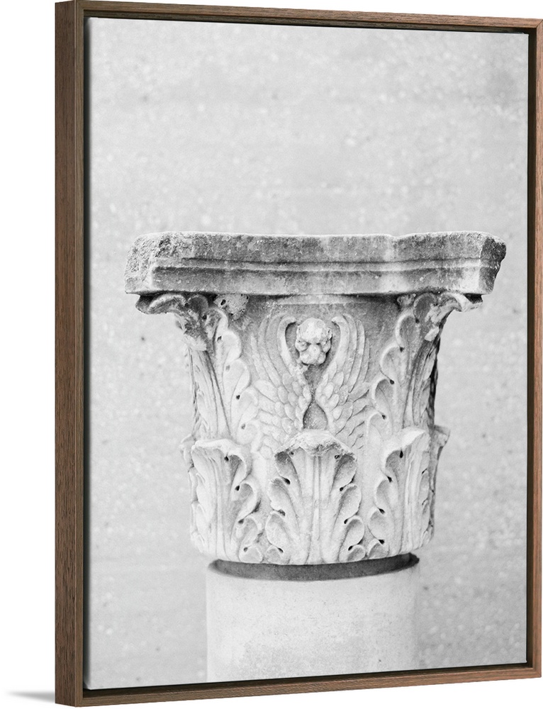<p>Black and White photograph of an ornately carved column, Athens, Greece.</p>