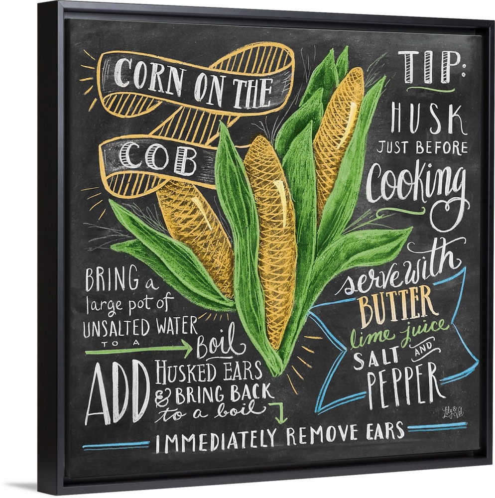 Art Kitchen Wall Art Chalkboard Art Drawing Food and Drink Food Vegetables Corn Illustrated Recipes Typography & Calligraphy Lily and Val