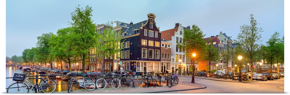 <p>Corner of Prinsengracht and Blauwburgwal at night, Amsterdam, North Holland, Netherlands.</p>