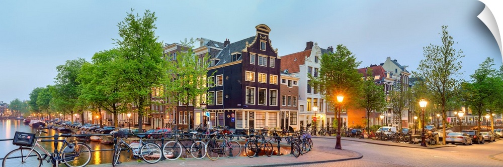 <p>Corner of Prinsengracht and Blauwburgwal at night, Amsterdam, North Holland, Netherlands.</p>