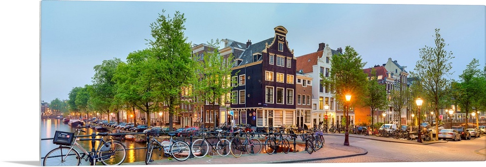 <p>Corner of Prinsengracht and Blauwburgwal at night, Amsterdam, North Holland, Netherlands.</p>