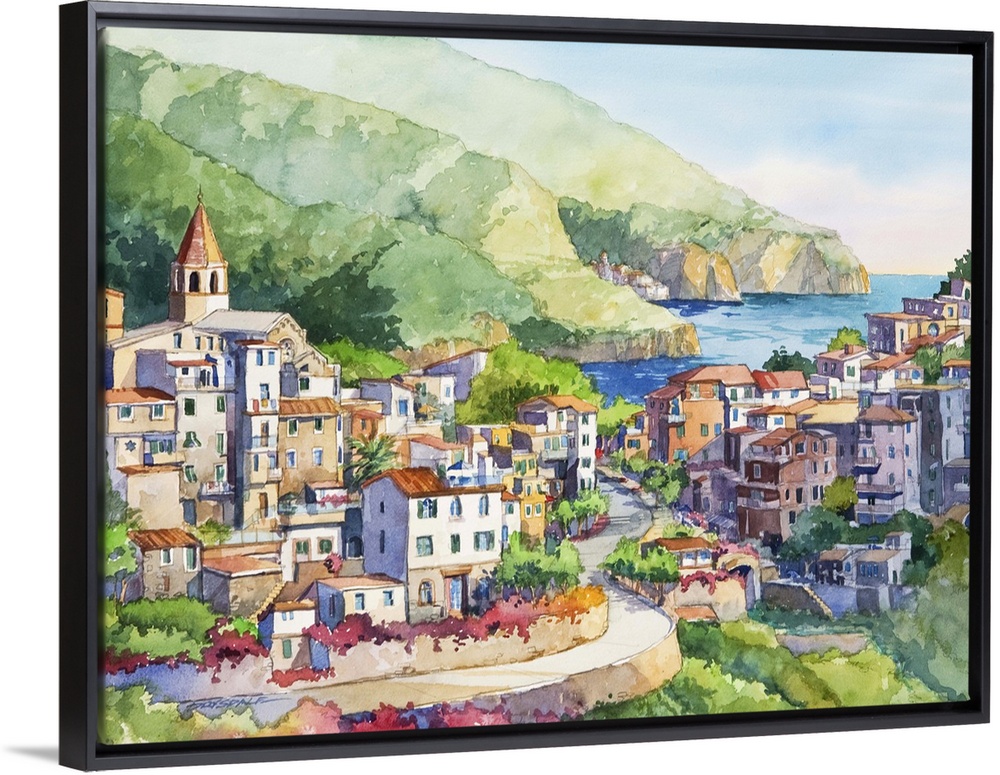 <p>Watercolor painting of Corniglia, a frazione of the comune of Vernazza in the province of La Spezia, Liguria, northern Italy</p>