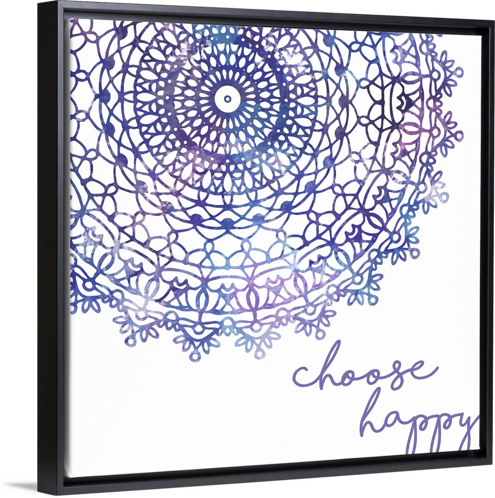 <p>"Choose happy" with an elaborate mandala design in shades of purple and pink on a white background.</p>