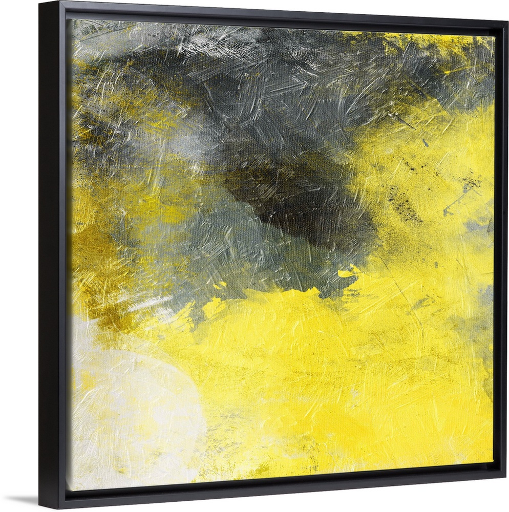 <p>Bright yellow and dark gray merging together in this abstract painting.</p>