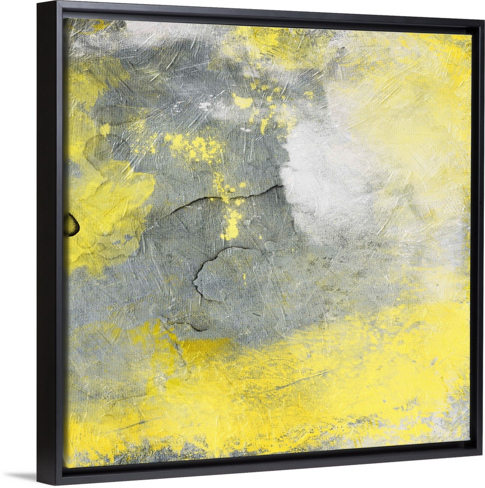 <p>Bright yellow and dark gray merging together in this abstract painting.</p>