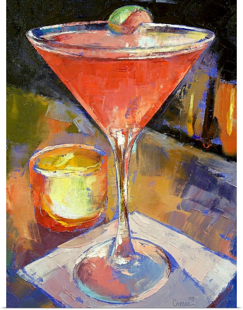<p>Artwork perfect for the home or kitchen of an oil painted martini glass filled with a pink drink and lime wedge on the side.</p>