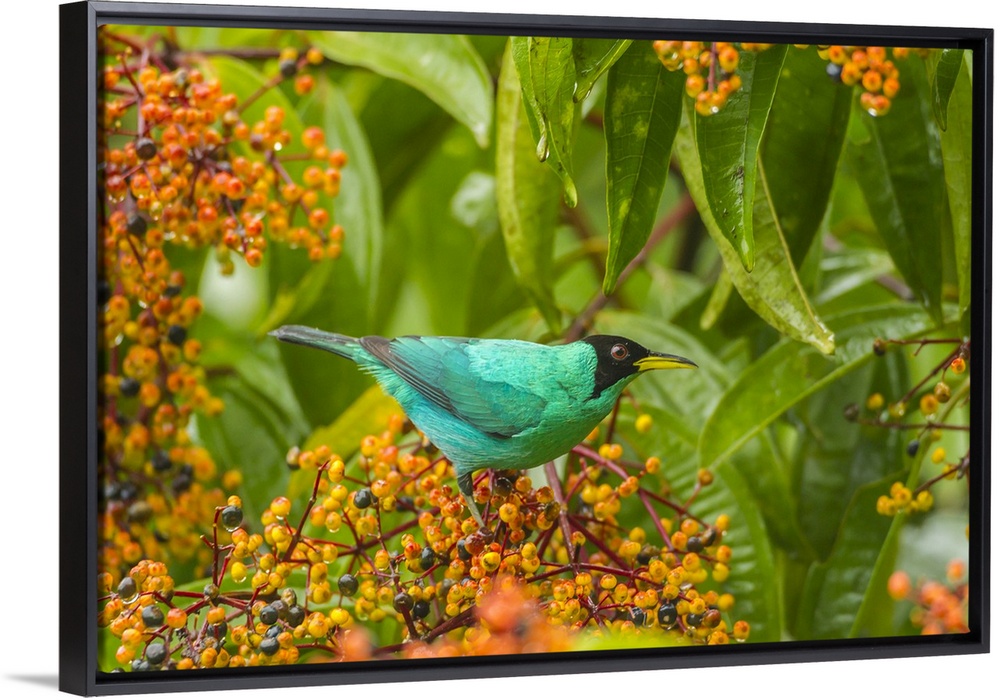 <p>Costa Rica, Arenal. Green honeycreeper and berries. Credit: Cathy & Gordon Illg / Jaynes Gallery</p>