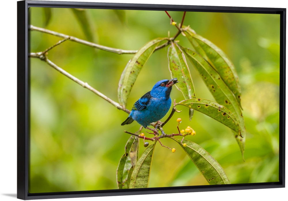 <p>Costa Rica, La Selva Biological Station. Blue dacnis bird feeding. Credit: Cathy & Gordon Illg / Jaynes Gallery</p>