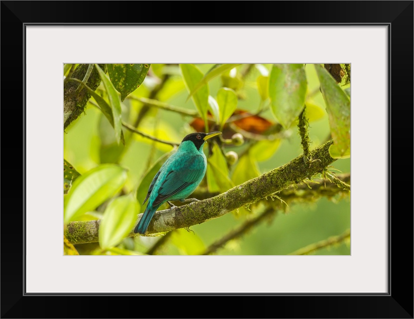 <p>Costa Rica, La Selva Biological Station. Green honeycreeper bird on limb. Credit: Cathy & Gordon Illg / Jaynes Gallery</p>
