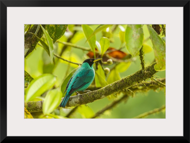 <p>Costa Rica, La Selva Biological Station. Green honeycreeper bird on limb. Credit: Cathy & Gordon Illg / Jaynes Gallery</p>