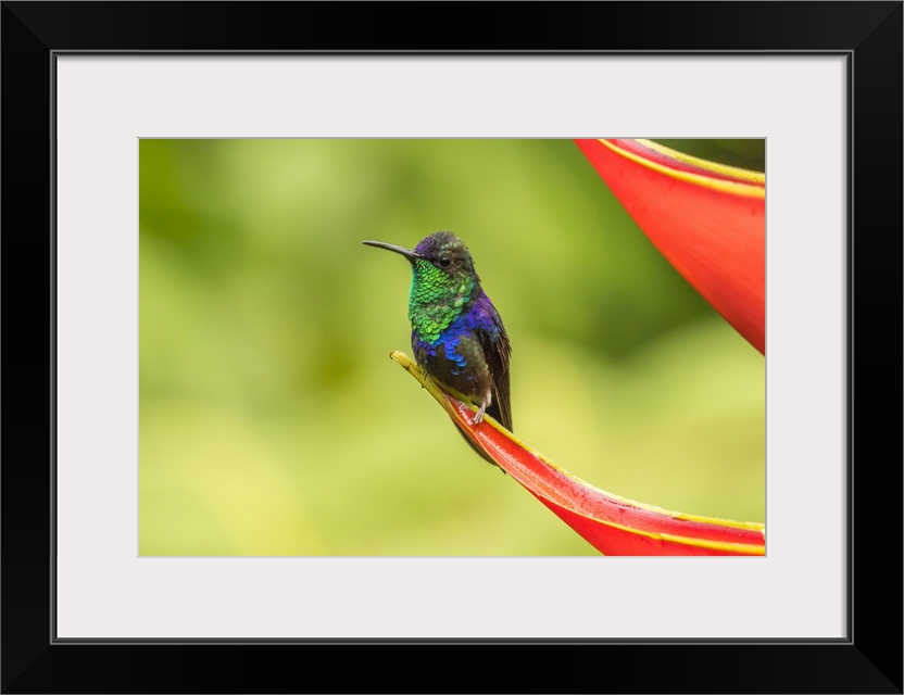 <p>Costa Rica, Sarapique River Valley. Purple-crowned woodnymph on heliconia plant. Credit: Cathy & Gordon Illg / Jaynes Gallery</p>