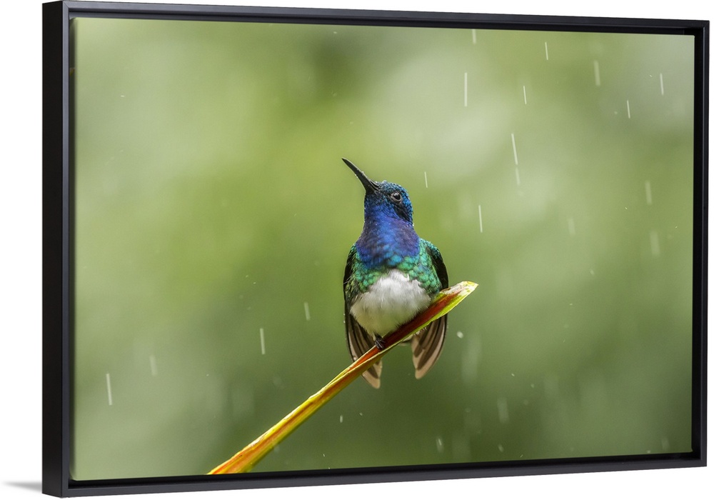 <p>Costa Rica, Sarapiqui River Valley. Male white-necked jacobin on leaf in rain. Credit: Cathy & Gordon Illg / Jaynes Gallery</p>