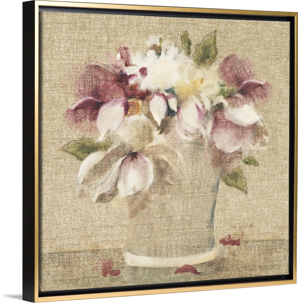 <p>A square contemporary painting of a bouquet of flowers in muted colors and a textured finish.</p>