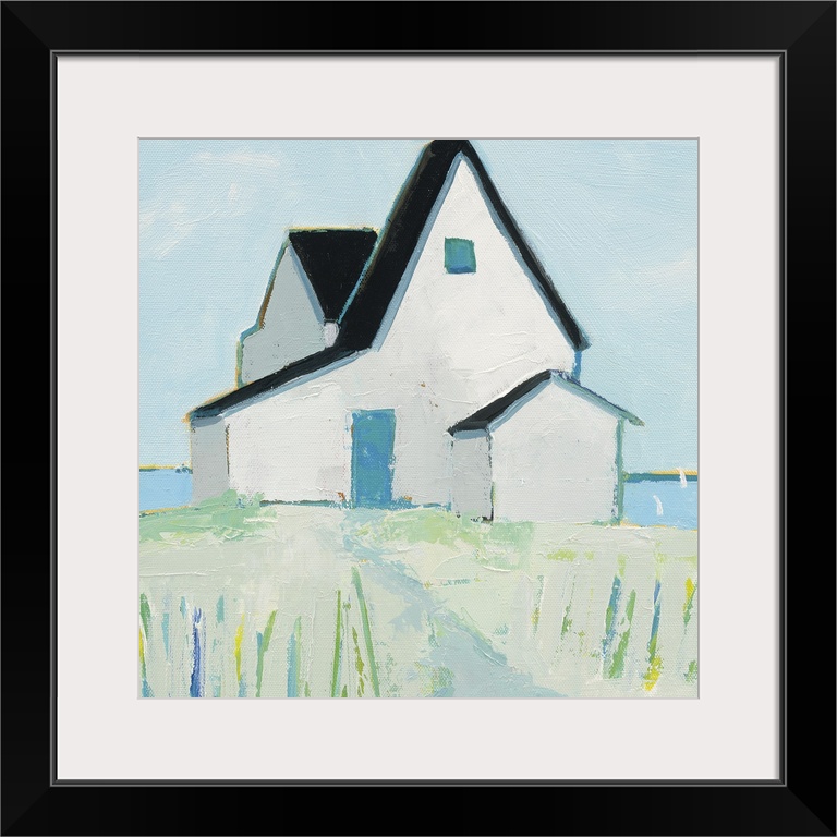 Phyllis Adams Cottages Houses Art Coastal Beach House Décor White Contemporary Art Painting