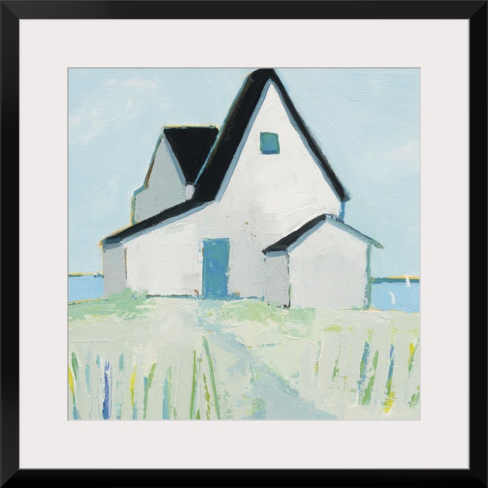 Phyllis Adams Cottages Houses Art Coastal Beach House Décor White Contemporary Art Painting