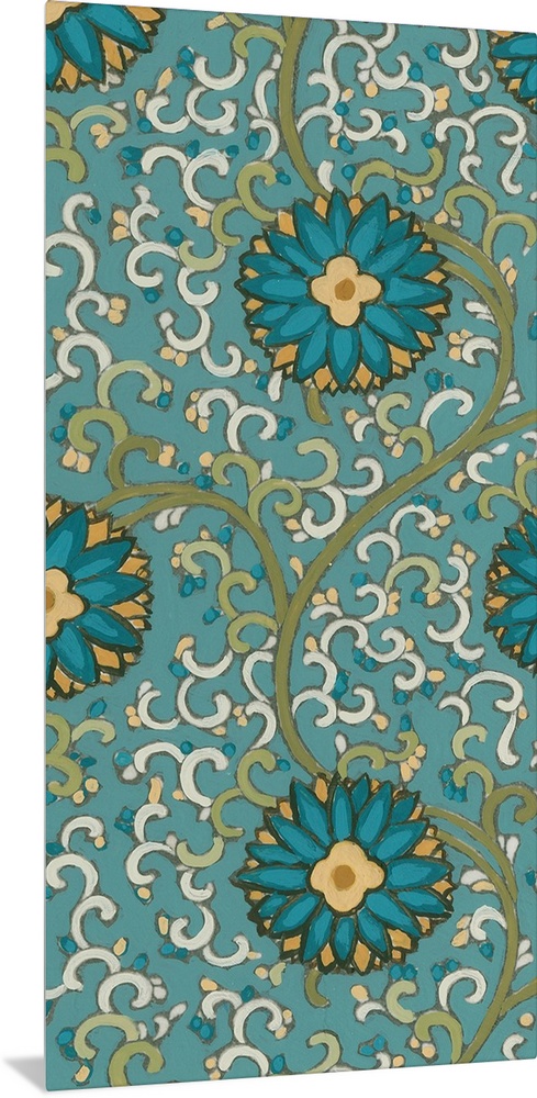 <p>Decorative floral patterned artwork using blue and green tones.</p>