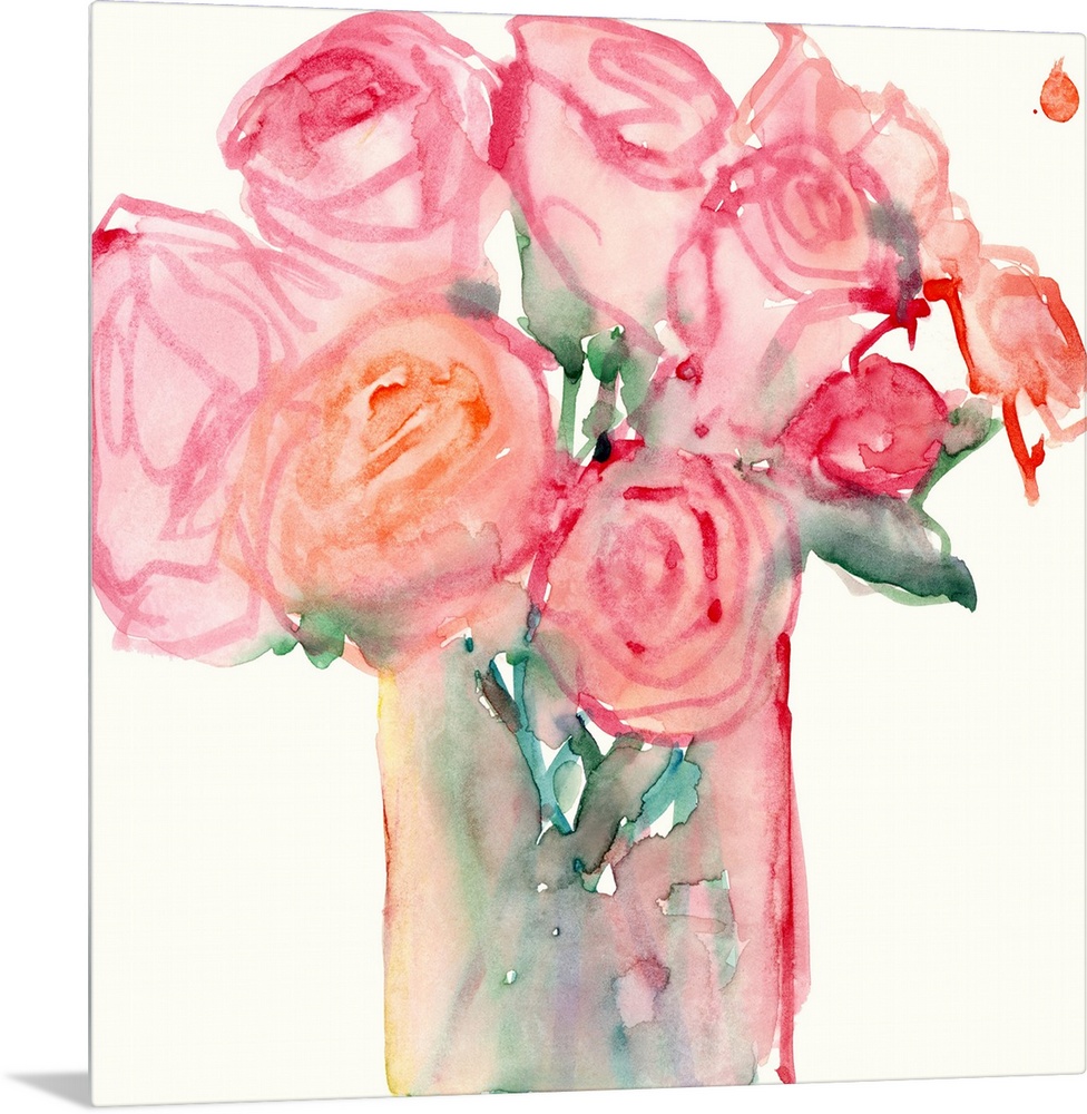 African-American Art Still Life and Florals Art Contemporary Art Plants and Flowers Samuel Dixon Florals Rose Painting Pink Wall Art Watercolor