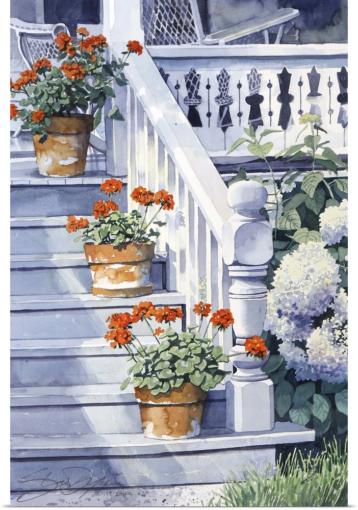 Architecture Staircase Art Traditional Contemporary Art Plants and Flowers Florals Stan Myers Painting Watercolor